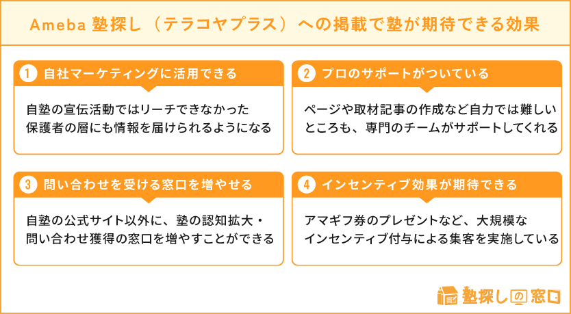 Ameba塾探し(テラコヤプラス)への掲載で塾が期待できる効果