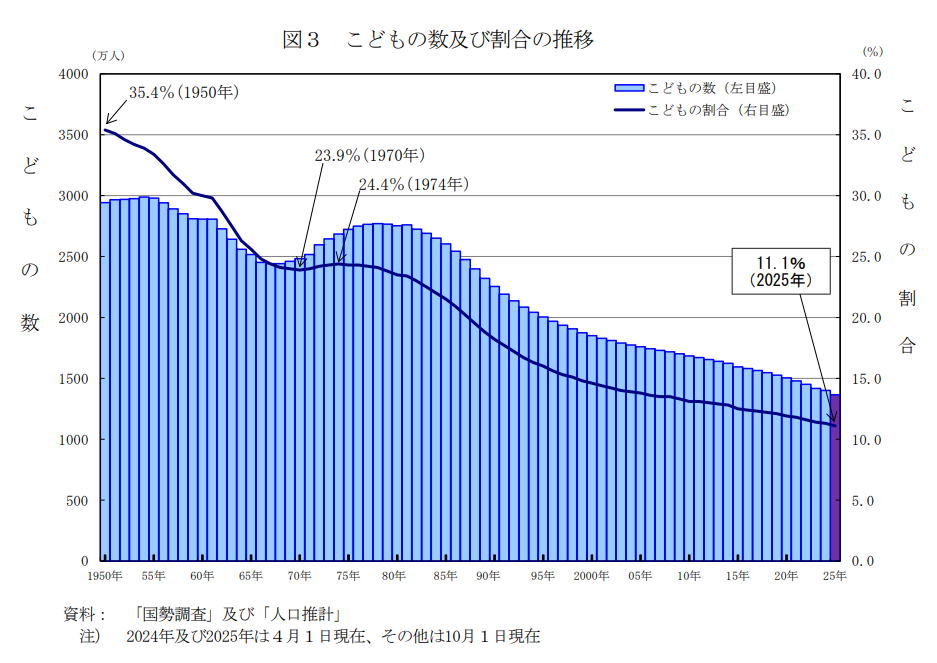 ※ 参照:我が国のこどもの数-「こどもの日」にちなんで-|総務省