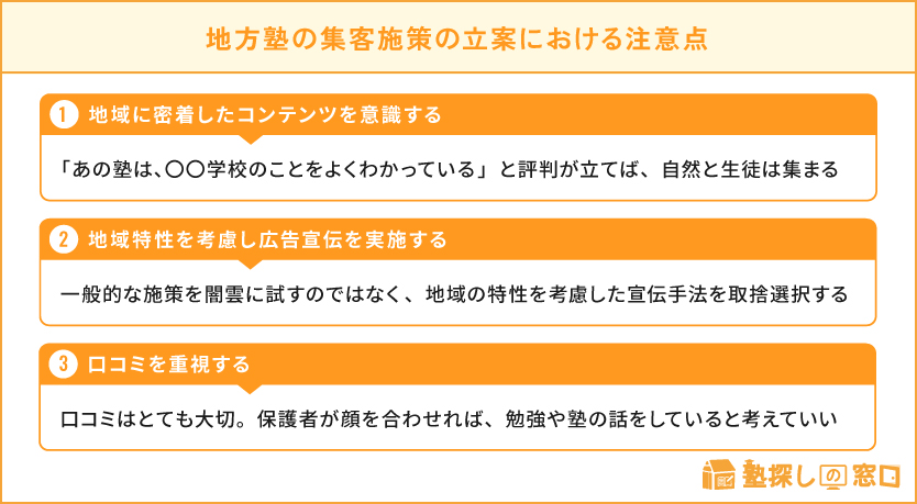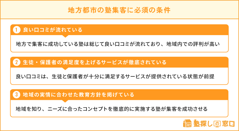 地方にある塾が集客を成功させるために、必要な条件は3つあります。
