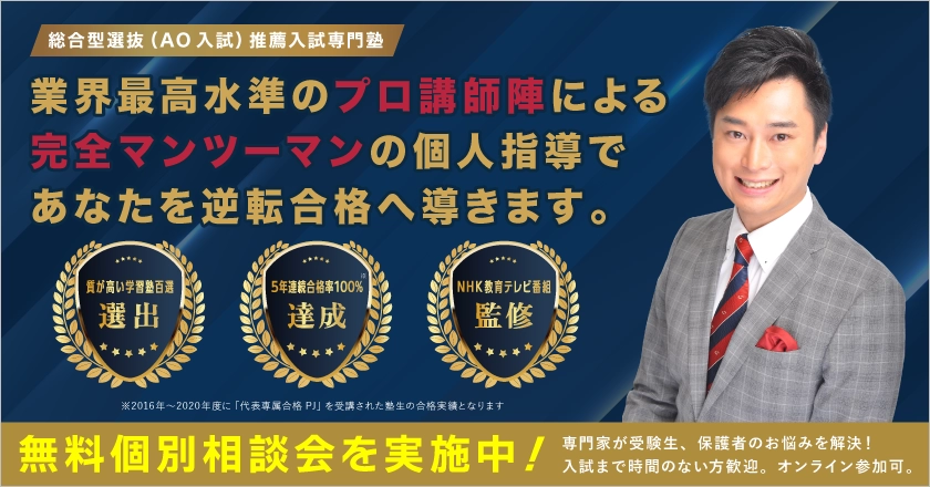 プロ講師が1対1指導する総合型選抜(AO)推薦入試専門塾