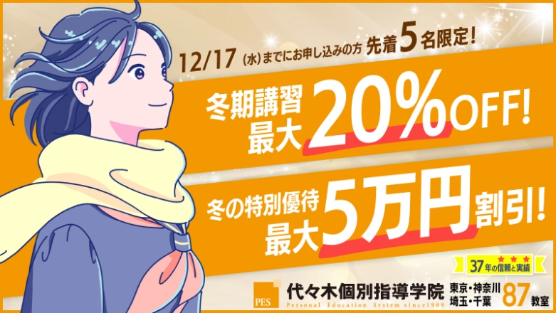 12月17日(水)までにお申し込みの方 各校先着5名限定!