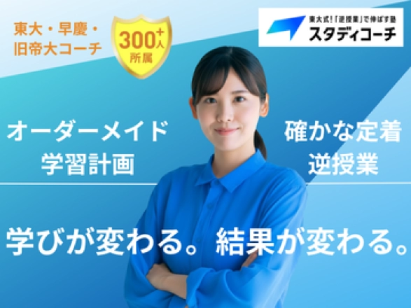 スタディコーチは、逆授業でアウトプットを鍛えながら難関大コーチが伴走するオーダーメイド指導を自宅から受けられるオンライン個別塾です。