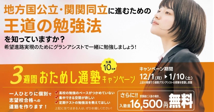 個別指導のグランアシスト【高校生専門教室】のキャンペーン情報