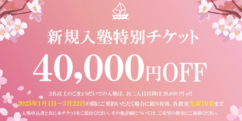 春のキャンペーン実施中!40,000円割引チケット進呈