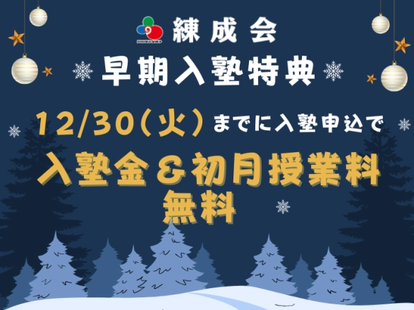 この冬、成績アップを目指すなら練成会の冬期講習会で学び、さらに早期入塾特典を活用してお得に入塾しませんか?