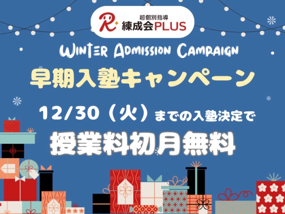 学力アップを目指すこの冬、練成会PLUSの早期入塾キャンペーンを活用してお得に入塾をスタートしませんか?