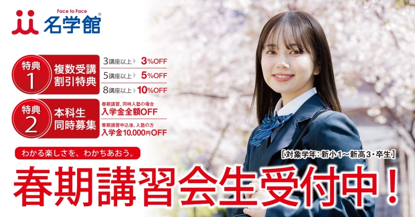 わかりませんは大歓迎!!個別指導塾の名門「名学館」の春期講習