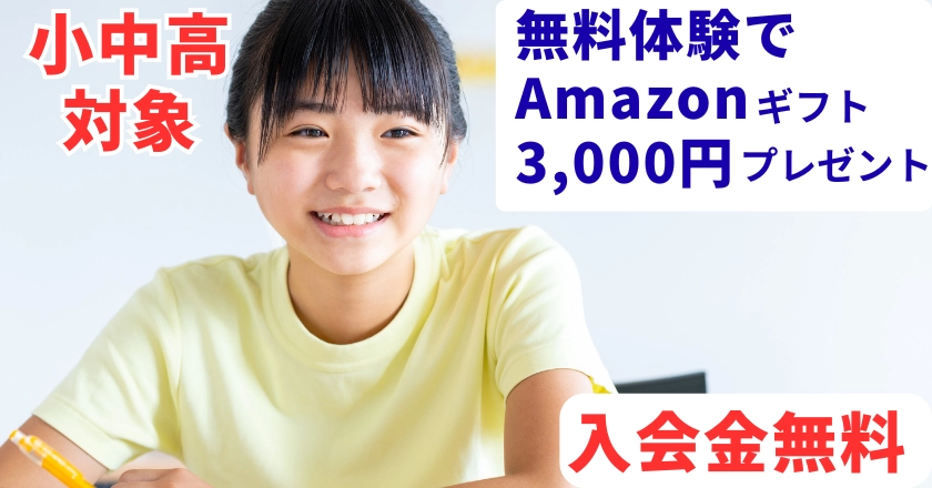 新中1生!2月3月授業無料+入会金無料+無料体験でアマギフ3,000円