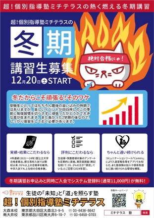 今年も12月20日(土)より、毎年ご好評いただいております「ミチテラスの冬期講習」を実施いたします。