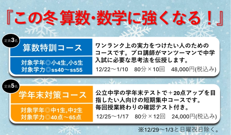 冬期に実力をつけたい方、ぜひご参加ください。