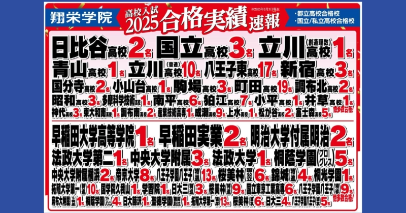 翔栄学院八王子みなみ野教室の合格実績