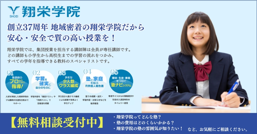 翔栄学院では英語のみならず、主要教科で小学校と中学校の学習の溝を埋めるべく、「高校受験」を目標とした独自のカリキュラム『小・中一貫指導』を行っていきます。