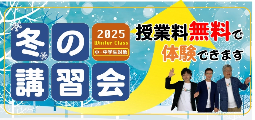 ★いずれの講座も、授業料0円でこの冬体験できます! ◆集団英語&数学(中1・2対象) →2学期内容は、1年の中で最も難しく、量も多いです。この内容を冬の講習でしっかりと復習します。 授業日と演習日が分かれているので、部活の両立も問題ありません。 ◆読解表現(中1・2対象) →『読みかた』を中心に指導しながら読解問題を扱う講座です。 |