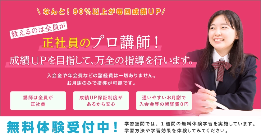 成績アップ保証あり!成果が見られなければ、無制限・無料で指導