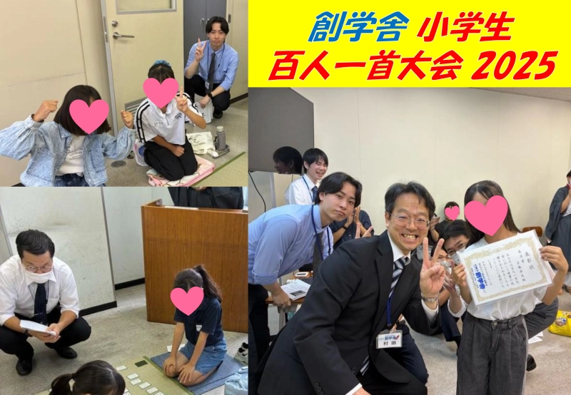 創学舎では「リテラシー(言葉を操る力)」を重視し、語彙力の強化を通じて学力の基礎、地頭を鍛える取り組みも私たちの特長です。中学生には「教科書英文の暗記テスト」を通じて、英語の構文や語彙を自然に定着させ、高校入学後も英語が得意科目になるような教育を行っています。また、同様の手法で「百人一首の暗唱」も取り入れ、日本語の語彙力や言語感覚を自然に育んでいます。