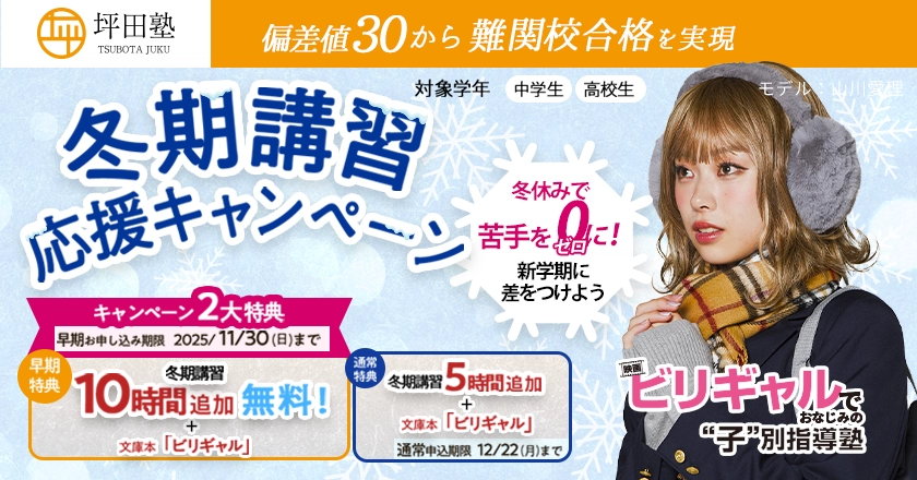 今なら10時間分無料!坪田塾の冬期講習は12/22(月)~