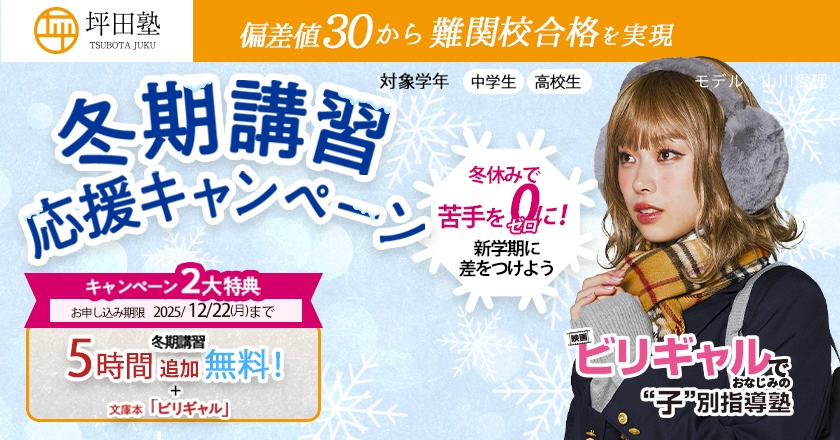今なら5時間分無料!坪田塾の冬期講習は12/22(月)~