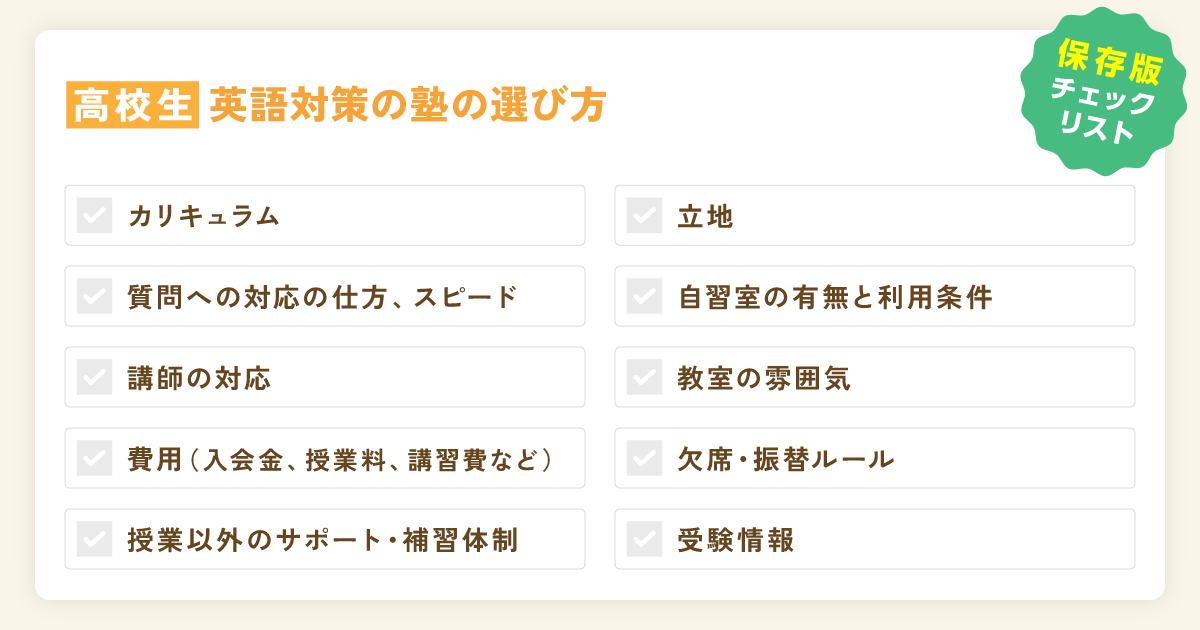 〈高校生の英語対策塾選び・失敗しないためのチェックリスト〉