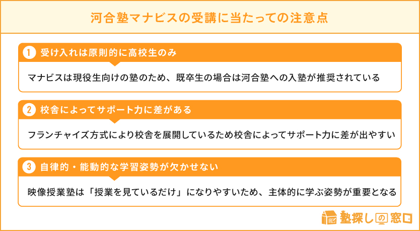 河合塾マナビスの受講に当たっての注意点