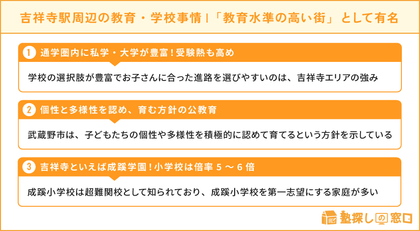吉祥寺駅周辺のおすすめ塾10選|地域の子育て、教育・学校事情なども解説