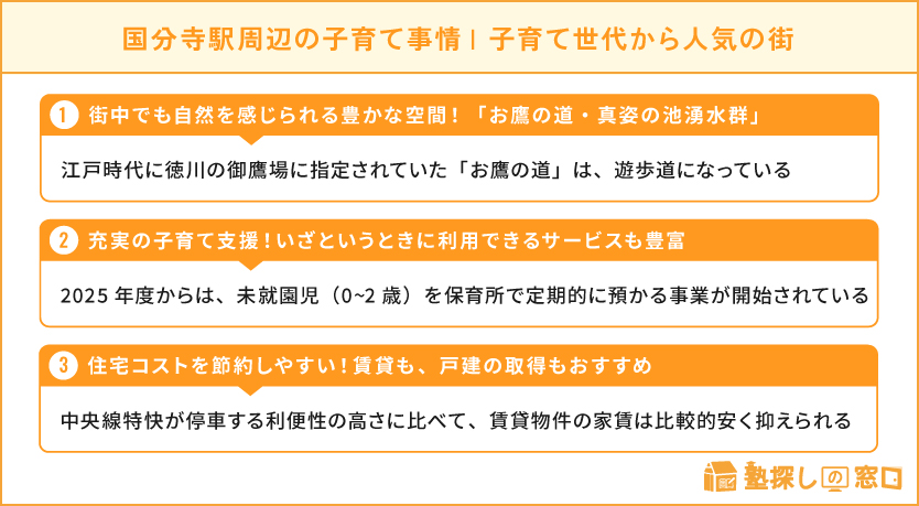 はじめに、国分寺駅周辺での子育て事情やメリットを見てみましょう。