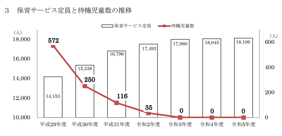 ※ 参照:保育所等利用待機児童数及び保育サービス定員について|大田区