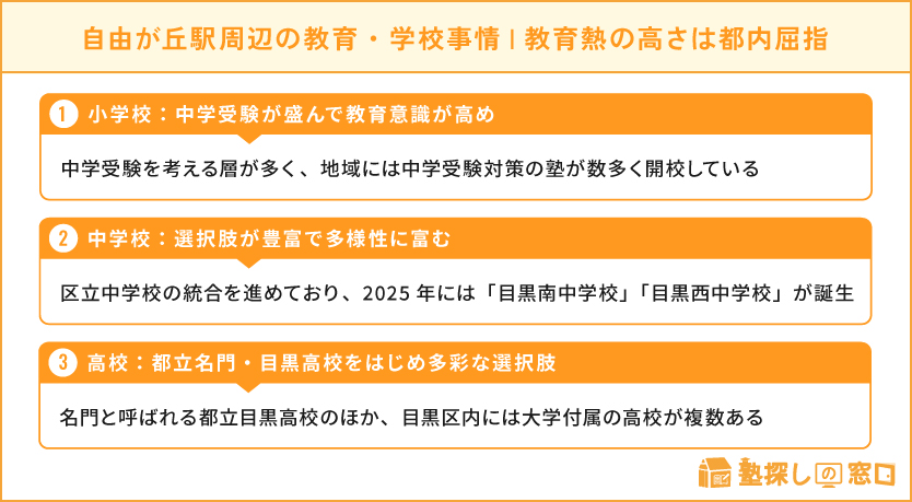 ここからは、自由が丘周辺にある学校の特徴を解説します。